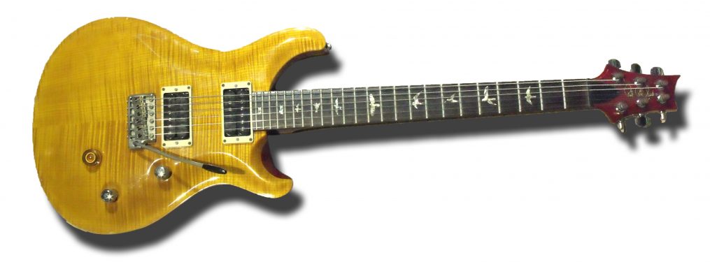 Where to begin… Lets start with the headstock – you may think this headstock may look a bit “fendery” to be on a Gibson, in fact, this headstock is from a Gibson Firebird which is one of my favorite Gibson designs of all time. The semi-hollow body is reminiscent of other 335 style guitars – its not to heavy but its all maple body is built like a tank. You may be surprised that Dave went with a semi-hollow body. As you may remember, Dave Grohl was the drummer for Nirvana, and I feel he is single handedly responsible for keeping rock alive. You’d think a solid body is more suitable for its high-gain application in the Foo Fighters, but believe me the semi-hollow body and burst-bucker pickups yield a thick yet sparkly tone that screams with distortion.